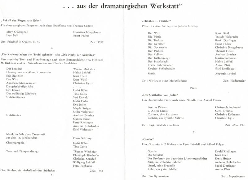 Vereinigung der Alt-Hietzinger - Theater 1981 "... aus der dramaturgischen Werkstatt" - 6 Einakter