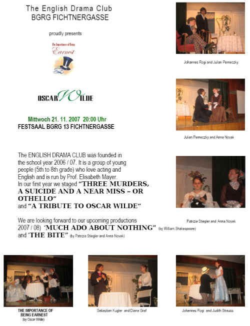 Mittwoch, 21. November 2007, 20:00 Uhr BGRG13, 1130, Fichtnergasse 15 Kartenvorbestellung: wieshofer@alt-hietzinger.at 0664/548-22-81 (Christoph Wieshofer)